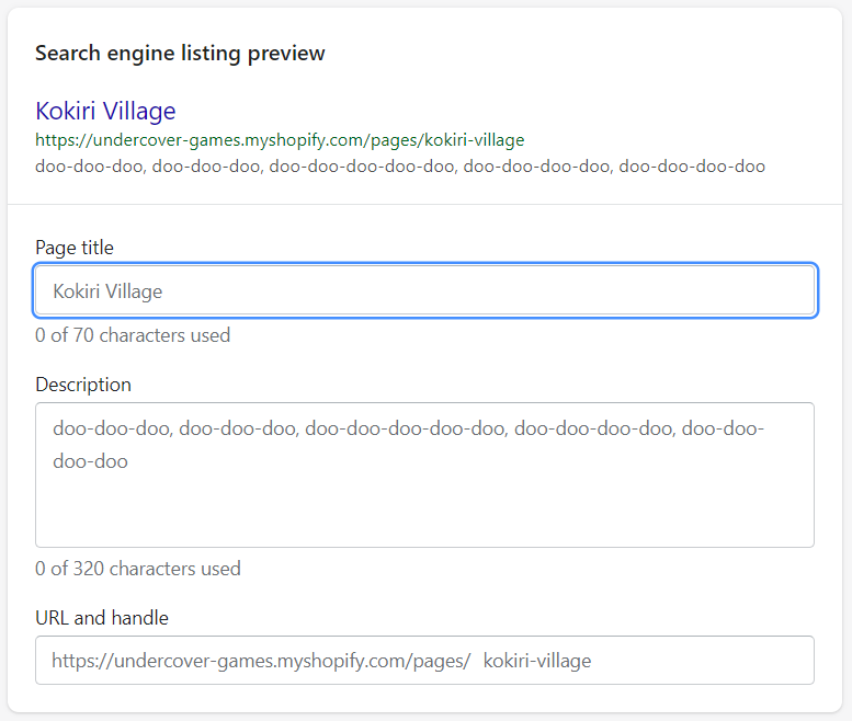 - Fill in the URL and Handle field. This area allows for the complete customization of your page's web address. If web changes are made, remember to set up redirects from any old web addresses