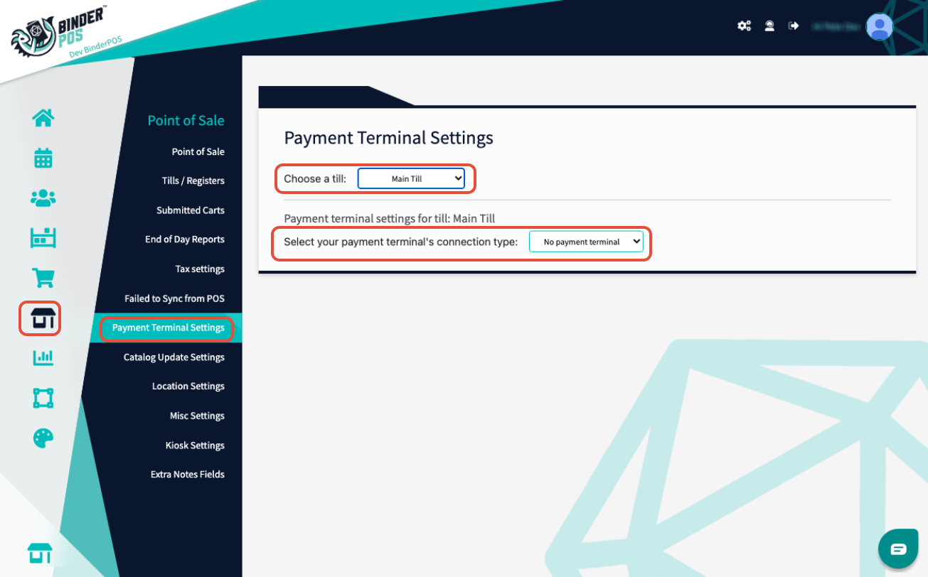 - From your BinderPOS Portal, select POS Settings > Payment Terminal Settings