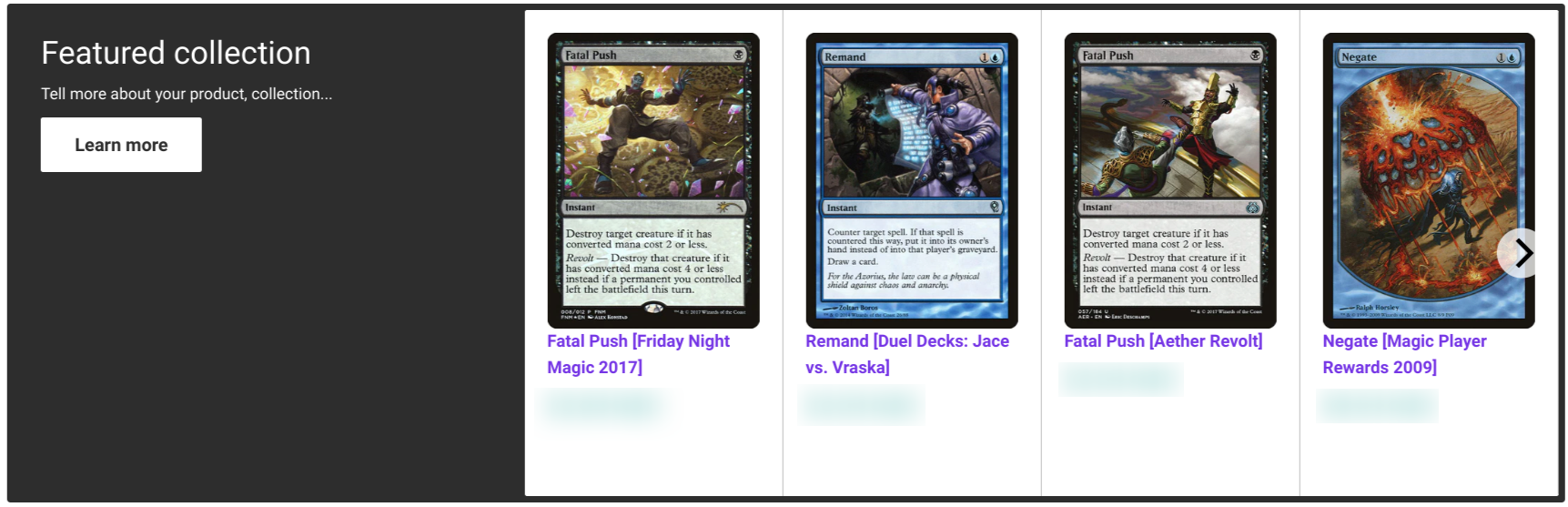 - Collections with Images allow for further customization over the Standard Theme's collection blocks with the inclusion of images