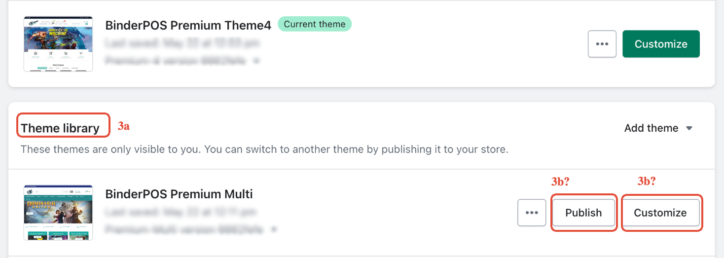 - If this is not the theme that your store wishes to use, then find the Theme Library section