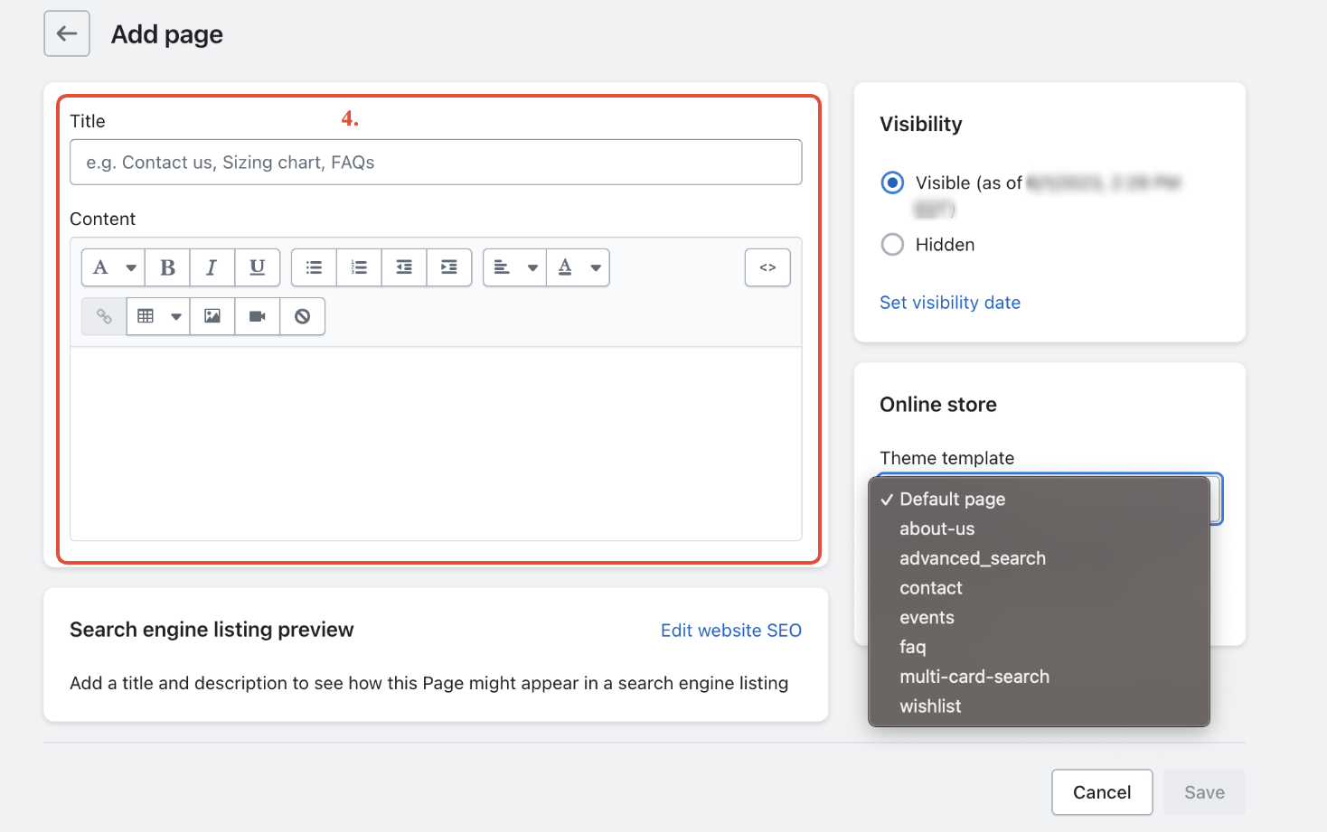 - After your store's chosen theme has been published, select Online Store > Pages