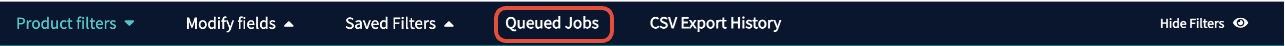 - From the Products tab, find find the Queued Jobs tab, located above the Product Search Fields