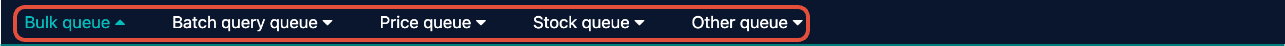 - From the Queued Jobs tab, find and select the type of Queued Job being reviewed. Again, these are: Bulk Queue, Batch Query Queue, Price Queue, Stock Queue, and Other Queue